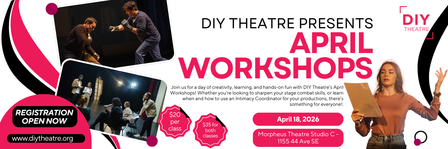 Join us for a day of creativity, learning, and hands-on fun with DIY Theatre’s April Workshops! Whether you’re looking to sharpen your stage combat skills, or learn when and how to use an Intimacy Coordinator for your productions, there’s something for everyone!